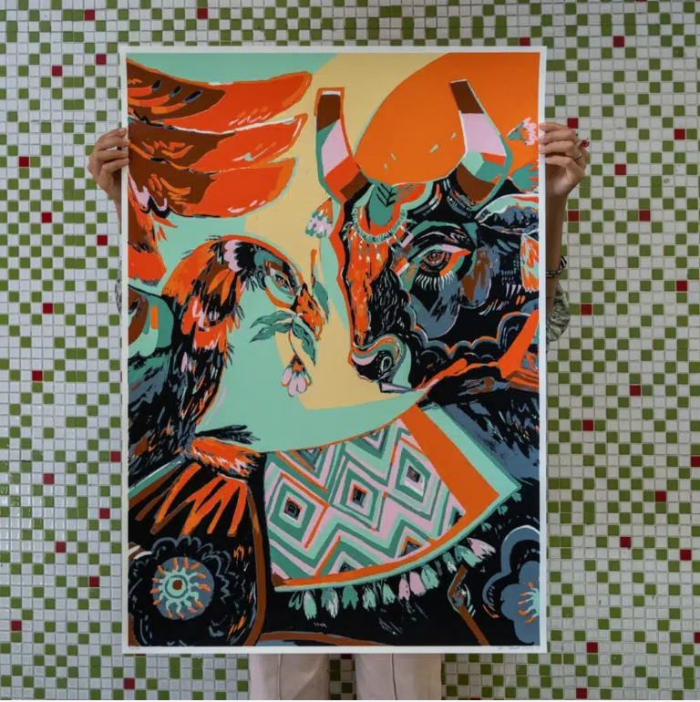 The bird, a condor, represents the sacred, the spirituality, the here and now and the future, but also the journey between this world and the hereafter, life and death, a central point of the worldview of indigenous communities in Latin America.