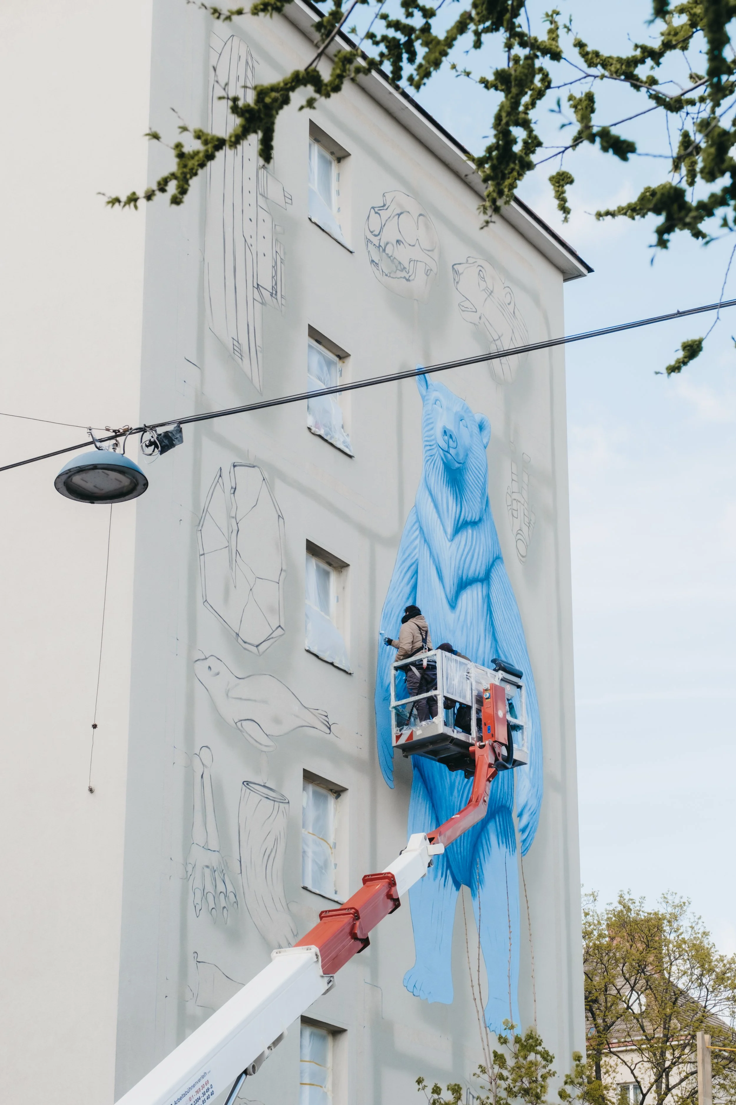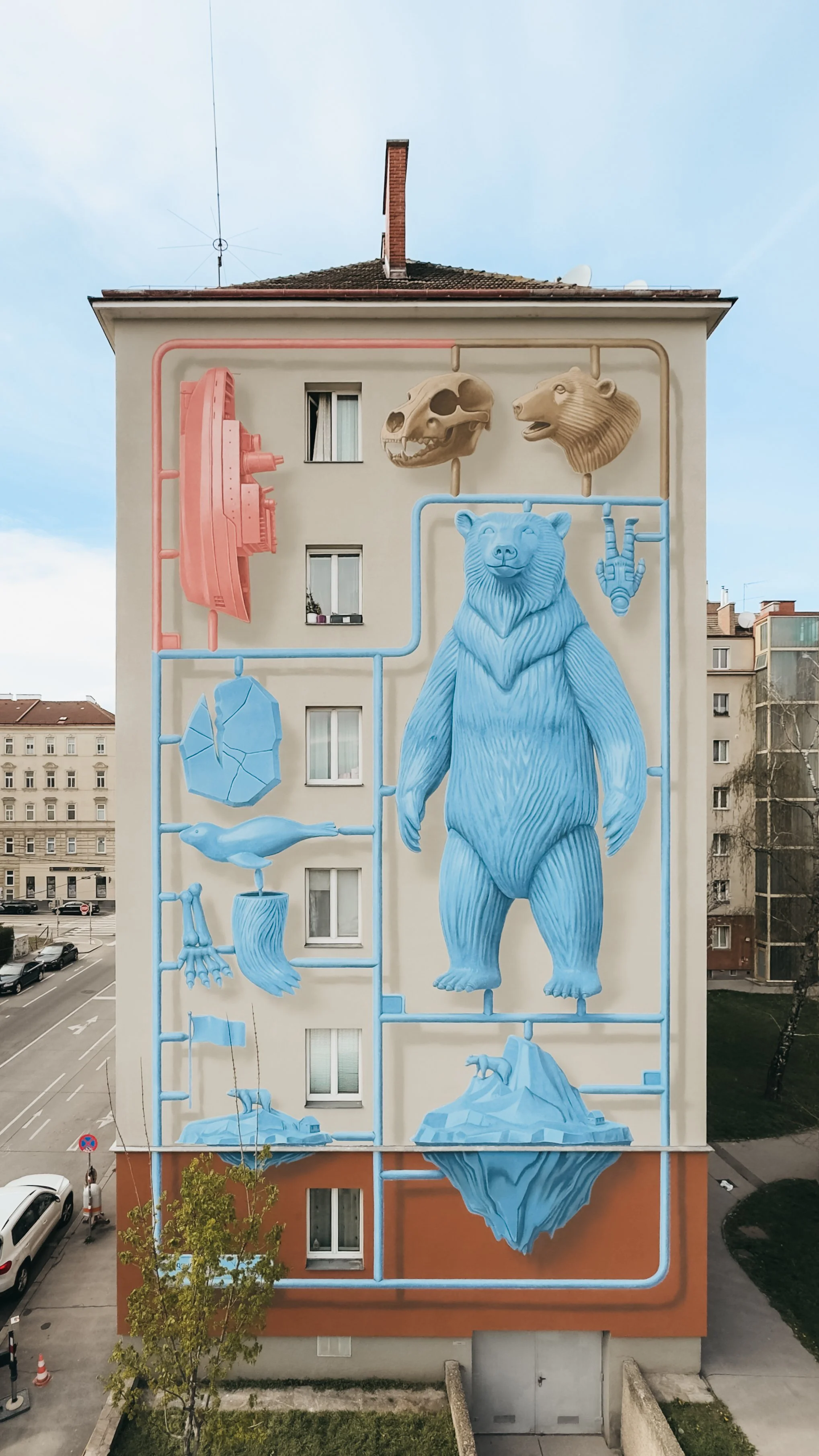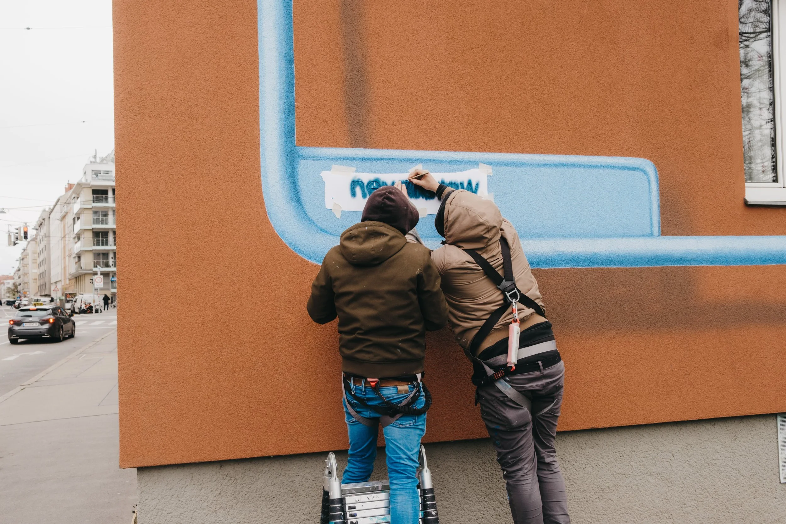 As part of the Klima Biennale Wien and in collaboration with Calle Libre – an association dedicated to art and culture in public space – NEVERCREW has created a new work at Baumgasse 77. This piece situates their recurring themes within both a local and global context. Calle Libre views urban art as a tool for social engagement, creating platforms where international artistic perspectives intersect with pressing ecological questions. In this framework, NEVERCREW’s intervention becomes part of a broader curatorial approach that understands public space as a site of responsibility, dialogue, and collective reflection.