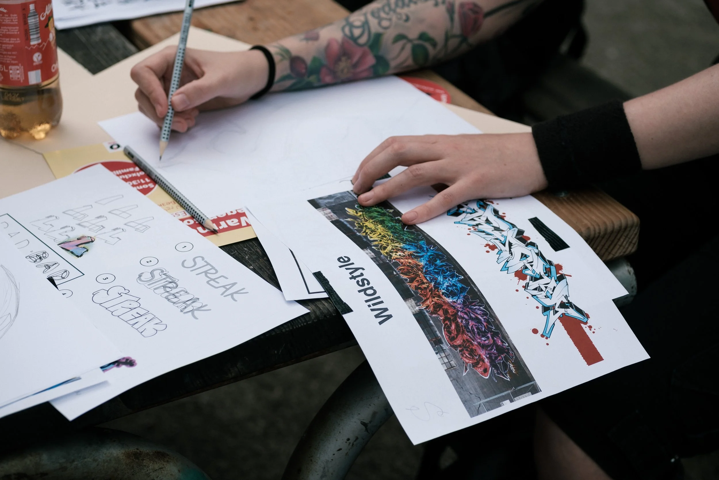 The workshops are divided into a theoretical introduction to the topic, a practical work session with the artist and a reflection on the resulting works. These workshops attracted a new type of audience and, within an innovative educational offer, encouraged young people and other participants to independently produce urban art. We want to give a wide audience and particularly young people a chance to interact with the artist, work autonomously, and gather vital knowledge about the art form as well as the techniques.